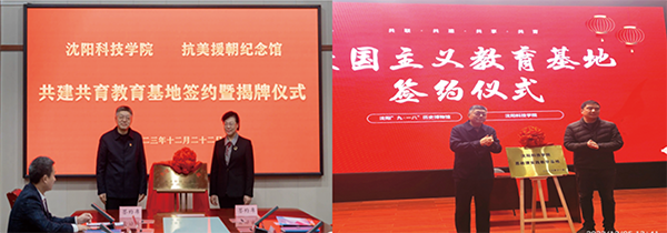 图为与抗美援朝纪念馆共建教育基地;与“九·一八”历史博物馆签订思政课实践教学基地