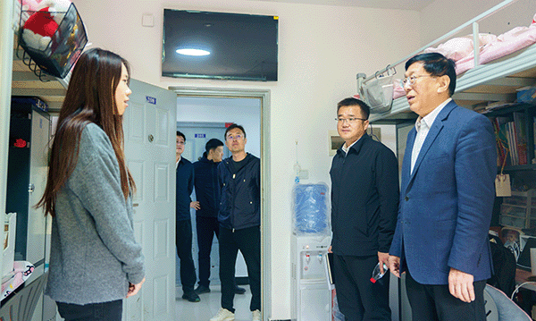 图为校领导走进“一站式”学生社区,帮助学生解决实际困难