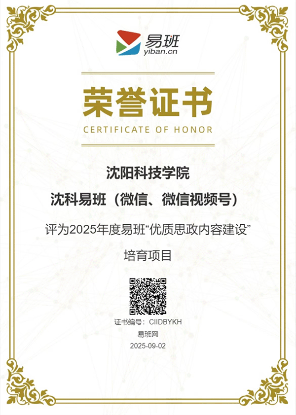 学校易班发展中心紧扣时代脉搏,积极构建网络思想政治教育新平台。依托“沈科易班”微信公众号和易班APP,打造了集思想引领、教育教学、生活服务、文化娱乐为一体的线上社区。“沈科易班”在网络思政工作方面展现出多维度创新实践,通过平台建设、内容创新、队伍赋能、资源整合四大核心举措,构建了具有校本特色的智慧思政生态体系。开设“易学习”“易服务”“易活动”三个特色版块,发布一系列贴近学生、内容鲜活的网络文化产品。“沈科易班”公众号、视频号在2025年度全国易班“优质思政内容建设”评选活动中被评选为培育项目。
