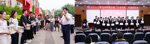 图为迎新当天为新生过生日;开展“十佳班长”评选表彰会;毕业生送别饺子宴;学生参与劳动实践教育活动