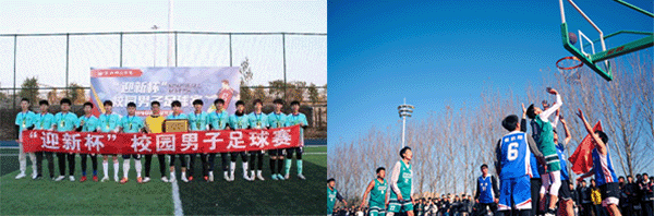 图为“迎新杯”校园男子足球赛;“迎新杯”校园男子篮球赛