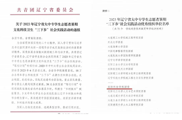 持续开展暑期“三下乡”社会实践活动、寒假“返家乡”社会实践活动,引导和帮助广大青年学生上好与现实相结合的“大思政课”。自第一党员大会以来,共发动师生12179人次,组成239支社会实践团队分赴省内外各地的两百多个城镇、农村、中小学和社区单位进行实践,学校连续4年获评辽宁省大中专学生志愿者暑期“三下乡”优秀组织单位,荣获省市级优秀团队5支、优秀个人9名。推动志愿服务项目化,组织师生志愿者圆满完成沈阳市马拉松、首届中国喜剧电影周、第七届中国粮食交易大会和辽宁省科技馆、辽宁省图书馆、沈阳抗美援朝烈士陵园等大型赛会、场馆的志愿服务工作,学校获评“沈阳市优秀志愿者组织”称号,1个志愿服务项目获得沈阳市优秀志愿服务项目。