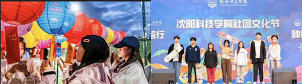 图为中秋节,我校师生一同赏灯花、猜灯谜;社团文化节暨学生社团招新活动