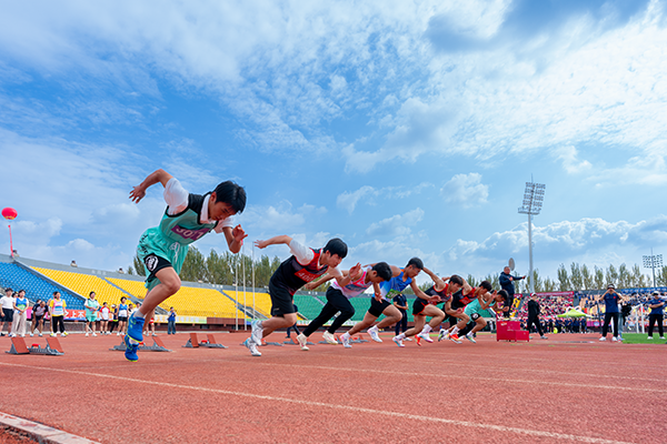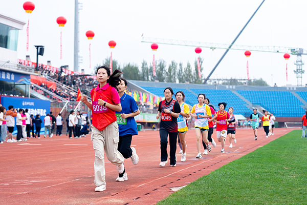 运动员们以饱满的激情、昂扬的姿态奋力向前奔跑