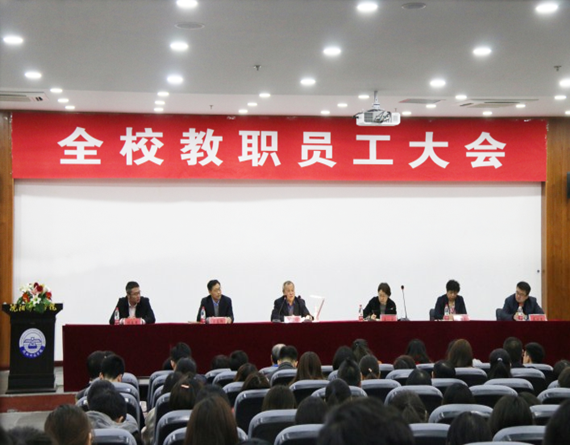 3月28日下午,我校在图书馆多功能报告厅召开了2018年春季学期全体教职员工大会。校领导杨化仁、王一女、王喜魁、张丽影、杨春光、高洪震出席会议,各单位、部门主要负责同志和全体教职员工共计200余人参加了本次大会。会议由党总支书记王一女主持。