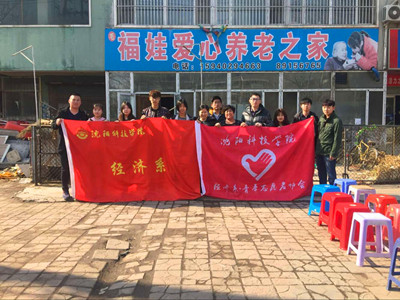 为展现党员模范带头作用以及青年志愿者的时代精神风貌,服务于社会,创造和谐家园。推广敬老爱老,爱心奉献,文明礼仪的服务活动精神、保持志愿者“奉献、友爱、互助、进步”的精神。2017年3月21日上午,经济系青年志愿者在经济党支部的带领下一起走进了位于苏家屯的福娃爱心养老之家开展活动。