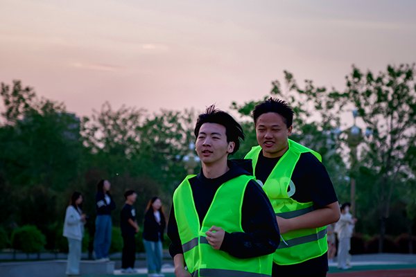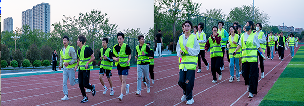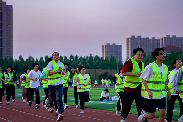 晚上18时30分,发令枪响,夜跑开始,同学们从荧光拱门处涌动而出,身穿荧光马甲,手戴荧光手环并肩前行,放眼望去,一路上荧光熠熠、星光点点,同学们对运动的热情在这个夜晚被充分的释放和点燃。