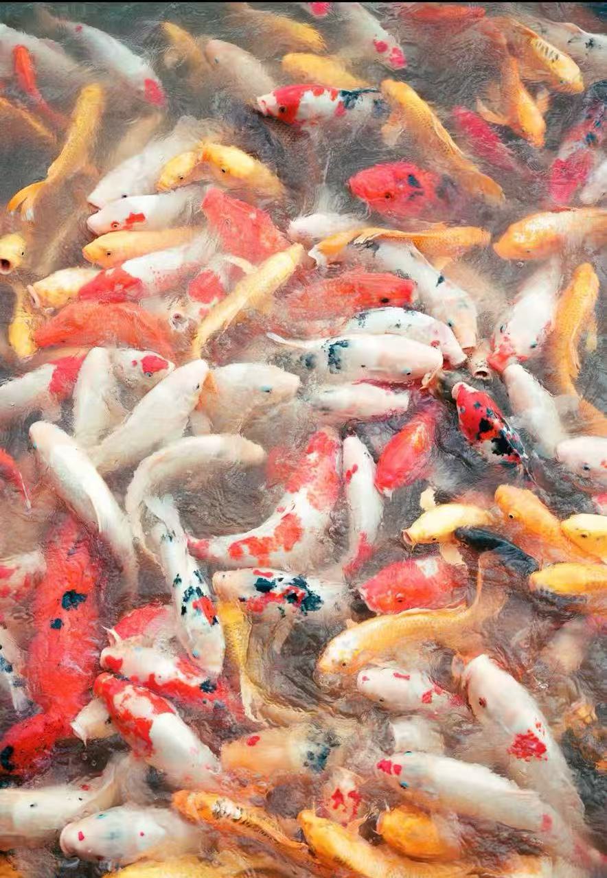 锦鲤池里,红鲤摇曳生姿